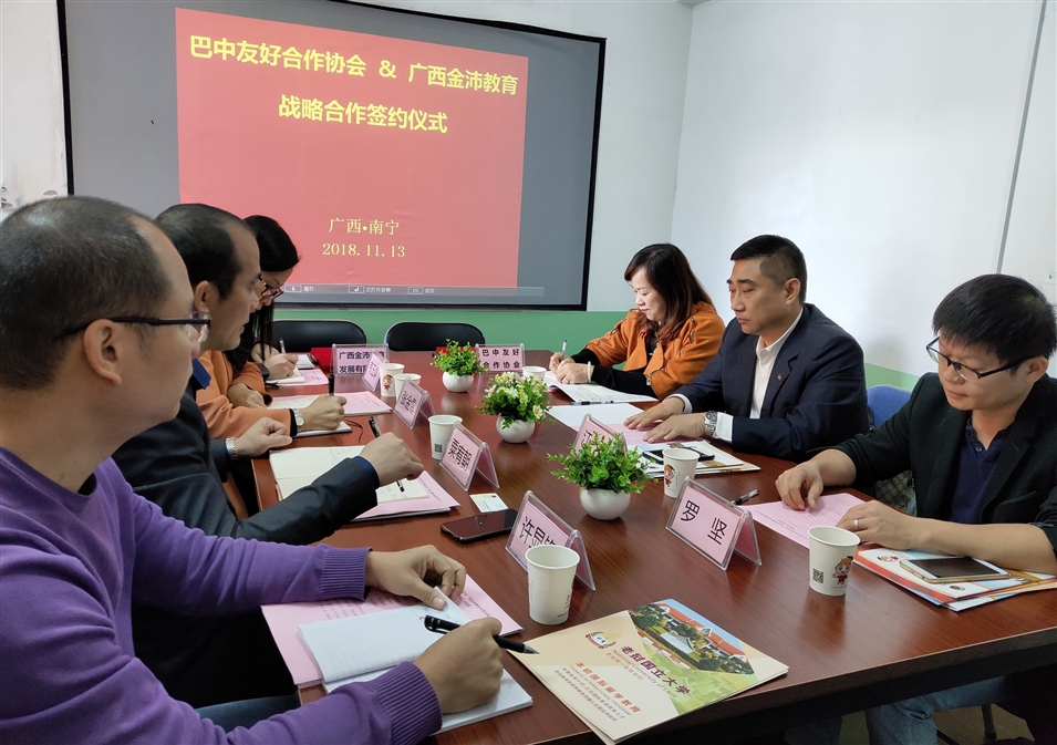 2018年11月13日,巴中友好合作協(xié)會(huì)與廣西金沛教育發(fā)展有限公司戰(zhàn)略合作協(xié)議簽約儀式在廣西南寧舉行,廣西金沛教育校長(zhǎng)張金雪女士與巴中友好合作協(xié)會(huì)副會(huì)長(zhǎng)江弘共同簽署了戰(zhàn)略合作協(xié)議。
