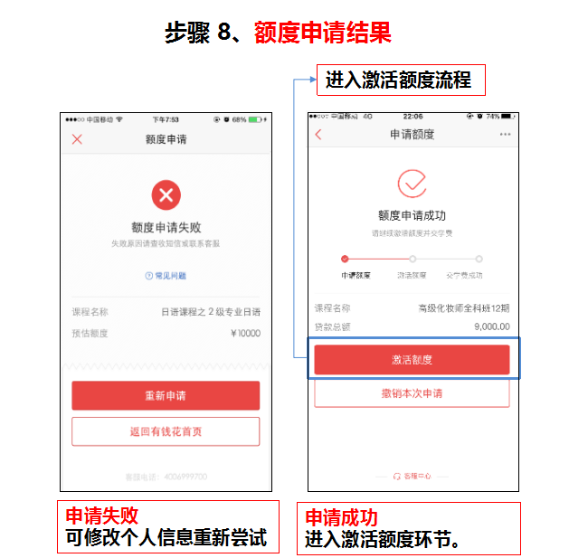 步驟 8、額度申請(qǐng)出結(jié)果,激活額度