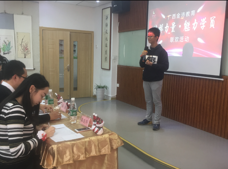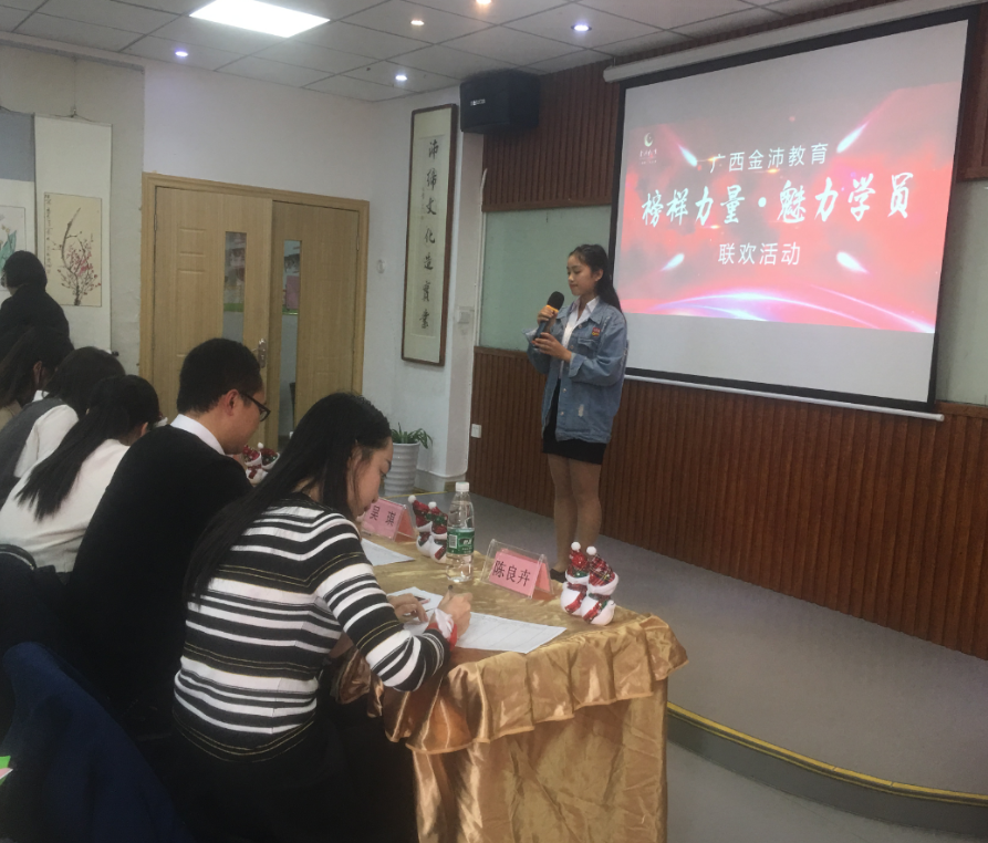 本次活動由廣西金沛教育發(fā)展有限公司南湖校區(qū)主辦,旨在通過本次的匯報(bào)演講,促進(jìn)學(xué)員交流。金沛教育領(lǐng)導(dǎo)及金沛高級教師到現(xiàn)場觀摩了學(xué)員的演講,并為獲獎選手頒獎。