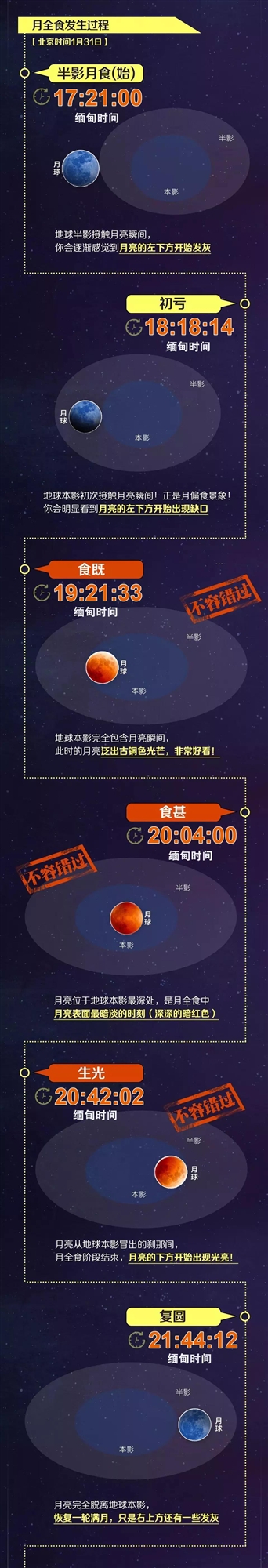 那么,今年的“血月”將在哪些時間段出現(xiàn)?為什么還會有藍月亮?欣賞和拍攝的最佳時間、位置怎么選?提前要準備些什么呢?答案都在此啦↓