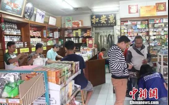 ▲圖為萬隆市具80多年歷史的“萬安和”中藥店,土生土長(zhǎng)的印尼顧客越來越多,而且他 們中的絕大部分都成了“回頭客”。林永傳 攝