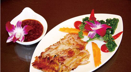 老撾多河流,自然產(chǎn)好魚,這里的魚個(gè)大柔嫩還鮮美多汁。當(dāng)?shù)厝俗钕矚g將這種扁魚烤著吃。而且烤的方法很獨(dú)特,把魚內(nèi)臟去凈后塞上一把新鮮的檸檬草。不但去腥,還讓魚平添一份檸檬的清香。最地道的老撾烤魚吃法是用生的綠菜葉子包裹著涼米粉、生茄子和蘸著調(diào)料的魚肉包一個(gè)大包,一口吞到嘴里,非常鮮嫩爽口。