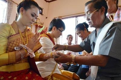 與中國不同,老撾流行“倒插門”,即男方主動到女方家里做上門女婿。婚禮也是由女方家操辦,這與老撾女性的社會地位日益提高息息相關。