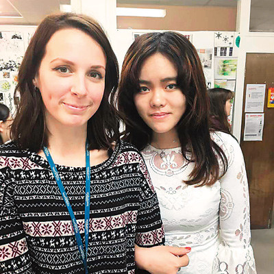 在英國(guó)的學(xué)習(xí)經(jīng)歷提升了王青瑜分配時(shí)間和自主學(xué)習(xí)能力。圖為王青瑜(右)和留學(xué)時(shí)的老師合影。