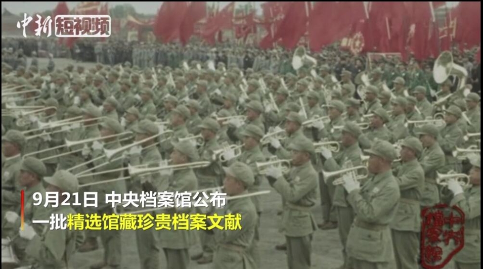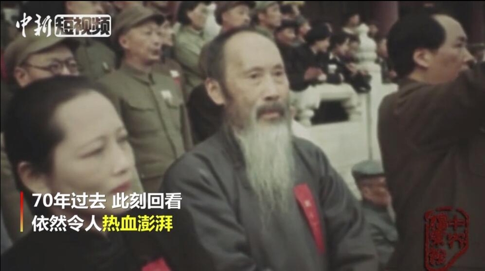 下午三點(diǎn),典禮正式開始。“我們親聆毛澤東主席向全世界宣告中華人民共和國中央人民政府成立了。接著是奏國歌、升國旗,激越的軍樂聲響徹云霄。我們都情不自禁高聲唱起國歌,目送著五星紅旗冉冉升起,心潮澎湃。”王明愛回憶道。