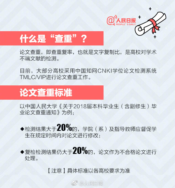 據(jù)調(diào)查,部分學校畢業(yè)論文“查重率”從原來的30%以內(nèi)降低到20%,更嚴格的甚至降到了8%以下。還有學校增加了重審環(huán)節(jié),即對已畢業(yè)學生的畢業(yè)論文進行質(zhì)量跟蹤監(jiān)控,一旦被查出高于查重率,將直接取消學位證書與畢業(yè)證書。