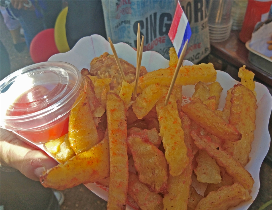 這是一場以各國美食為媒介的文化互動(dòng),文學(xué)院各系的學(xué)生在美食活動(dòng)現(xiàn)場展示了日本、中國、老撾、韓國、法國歐、亞兩州不同國家的美食,比如中國的燒仙草、法國的薯?xiàng)l、老撾的肉串等,老撾國立大學(xué)的學(xué)生在暢享美食之際也在進(jìn)行飲食文化的分享與交流。